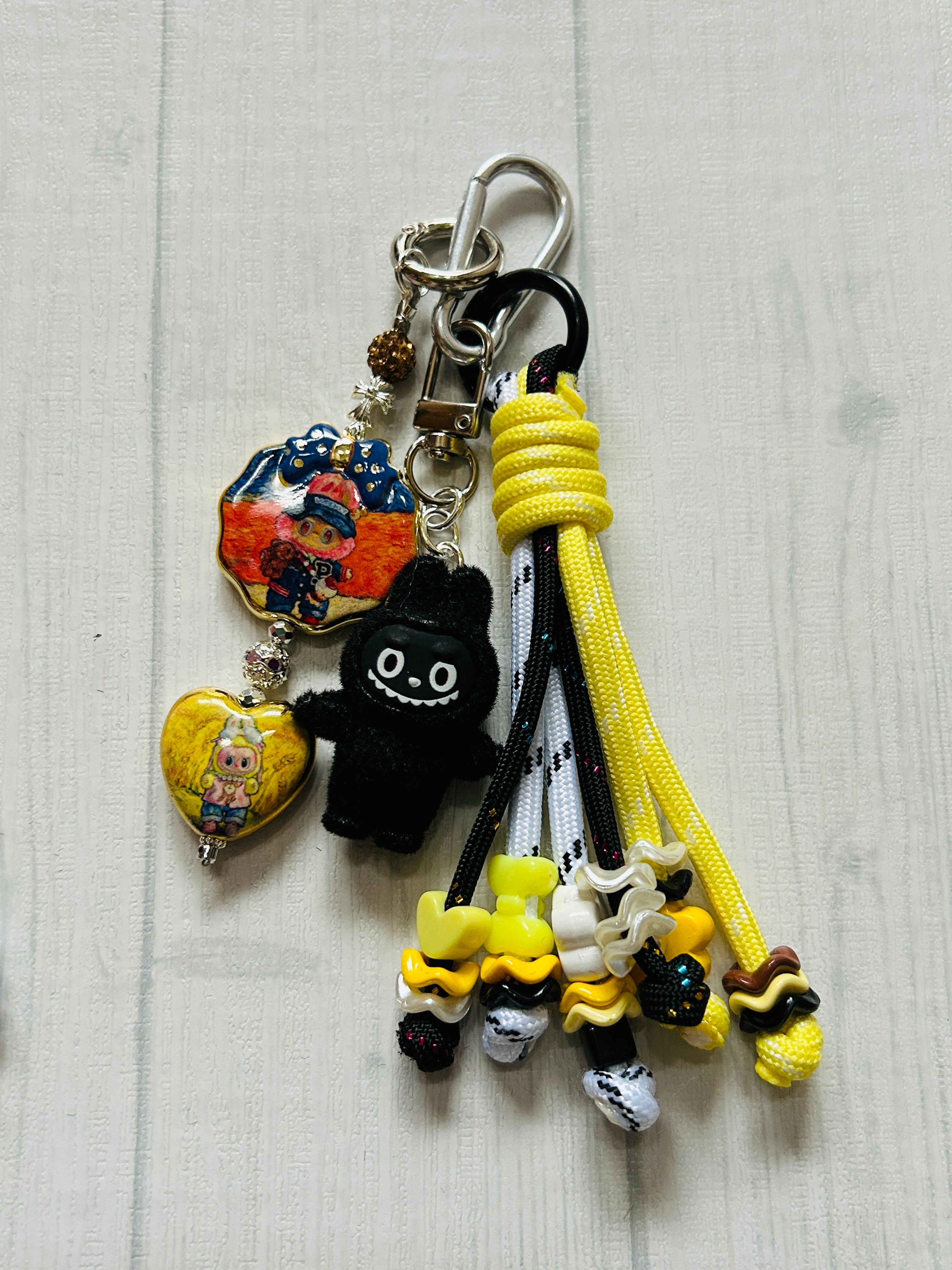 可愛い黒のブブにパラコード、プリントビーズを合わせたストラップ